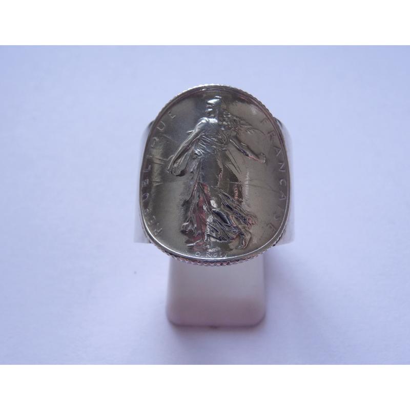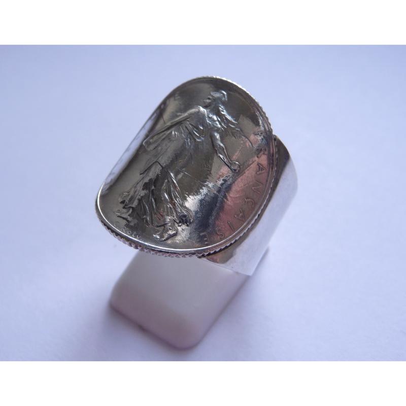 Bague pièce argent 1 Franc Semeuse corps large
