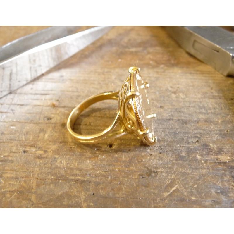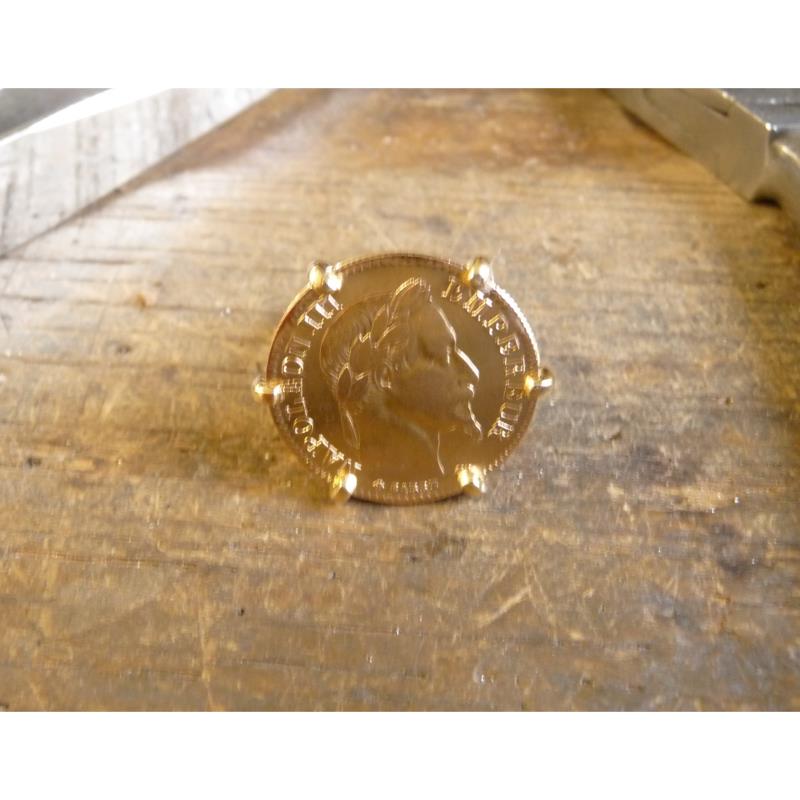 Bague pièce or 18 KT panier arabesque 6 griffes avec 10 Francs or Napoléon